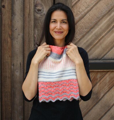 Basmoore Cowl is a super simple cowl knit in 3 colors, or a mix of scraps. This is knit entirely in the round, bottom up.