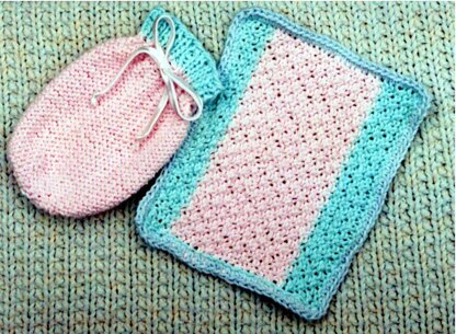 What a perfect, lovely gift this would make! Knit both the scrub mitt and cloth, and wrap it up with a bar of lovely scented soap for a Christmas Gift! Use a satin ribbon for tie at wrist, and it will look like you paid a lot of money for this set! Make in cotton worsted weight yarns, and knitting needles, US # 9. Make lots of these for gifts, as your friends will love this! Mitt is about 4 ½” by 8” long, cloth is about 7 ½” by 7 ½”. A perfect size for a face cloth!