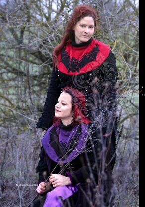 Beautiful cowl/loop/slip scarf with bat motif in doubleface technique, which keeps you nice and warm not only on Halloween.