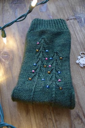 Bauble Extravaganza is Holiday Cheer and fun knitting all rolled into one! Christmas is my absolute favorite time of the year and I thought it needed commemoration. Bauble Extravaganza has simple cabling and beading every few rows to decorate your tree. Beads not your thing? Easy! Have a lovely pine forest decorate your socks instead.