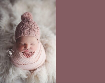 This is a downloadable PDF pattern for the knitting of this newborn/21-22 inch reborn size knit Bayou hat with PomPom and NOT the actual finished item