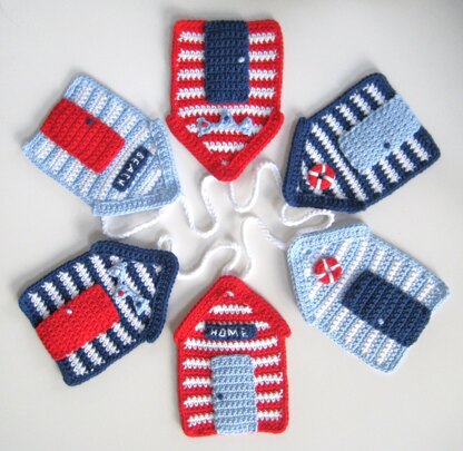 The summer never ends with this bunting on the wall! This is a crochet pattern for a gorgeous beach hut bunting or garland. It's a beautiful wall decoration for that little girl or boy's bedroom or playroom, but would look equally as good in a grown-up space, like on a wall in your summer house, and will instantly cheer up any space, even on a gloomy day.