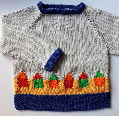 You can choose to work the beach huts in one colour or different colours. You can also choose whether to work the beach huts in Stranded Knitting or Intarsia.
