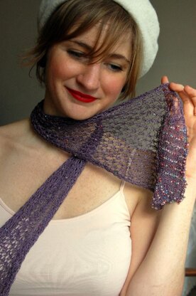 The beaded scarf is knitted using a lace weight rayon yarn, but any drapey yarn would work. The ends of the scarf are shaped by decreasing or increasing, with various colour beads added on alternate stitches, The main body of the scarf is knitted in a simple lace pattern with beads added at random. For a 100cm scarf 30g of rayon and 500 size 8 glass seed beads were used. The rayon yarn used is available here.