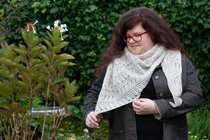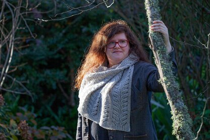 Beginning with only a few stitches, columns of gracefully-curved leaves sprout from the edge of the Beanstalk Shawl, forming its triangular shape and climbing towards the bind-off edge. The shawl’s crisply textured lace includes increases and decreases on every row, but with the use of stitch markers between repeats the 6-row leaf pattern soon becomes rhythmic and satisfying.