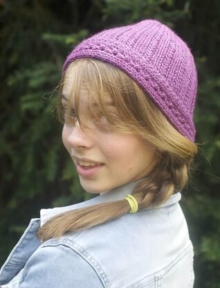 Finished Measurements: Circumference at brim unstretched: 18.5 (19.5) inches Circumference at brim stretched: 22 (24) inches