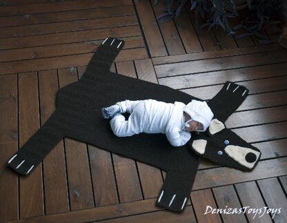 Baby Blanket Bear Rug ( Mat ) Number 3. Bear rug measures 45,3 inches ( 115 cm ) from nose to tail. And 38,5 inches ( 98 cm ) between tips of paws. Width at the narrowest point 19 inches ( 48 cm ).