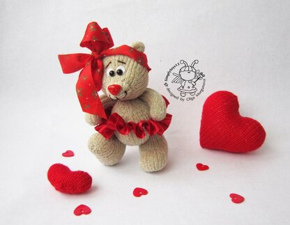 The finished sweet bear approximately 5,12 inches (13 cm) tall. The head, arms - rotate