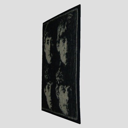 Everyone recognises The Beatles, even though you won't see them when you stand immediately in front of this illusion knitted hanging. The image only emerges as you move around and view from the side.