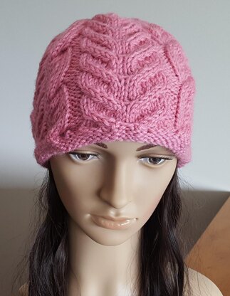 This 12ply Beanie features two cable patterns and has a reverse stocking stitch brim.