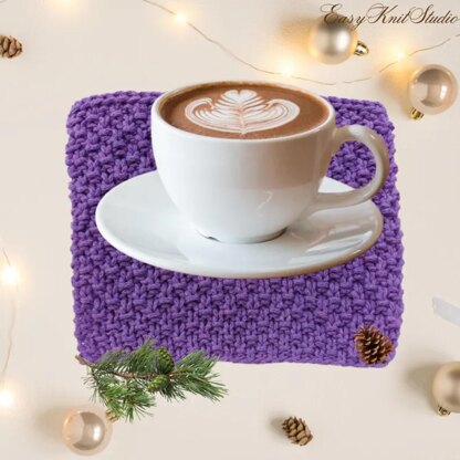 Knit your own cozy, sustainable mug rug with this easy-to-follow PDF Knitting Pattern. This is the perfect first project to practice your stitches and build your skills. These colorful cotton coffee coasters make lovely homemade gifts or additions to your kitchen.