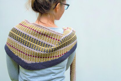 When I set out to create this shawl, I wanted something to use up the Rosy Green Wool I had left over from previous projects. The design flowed together so seamlessly that it wasn’t until long after I was finished that I recognized the unconscious inspiration influencing the placement of coulours. Luebeck, my home town, is also the home of a very talented weaver, Ruth Loebe, and her choice of colours must have been in the back of my mind when designing this shawl.