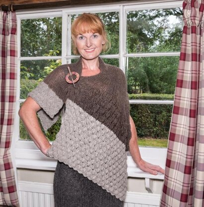 When I first made my new worsted spun yarn, I commissioned Belinda Harris Reid to design something with it. This wrap is her creation, designed exclusively for us. It only uses two skeins and the techniques used are making one stitch (by using the tip of left needle to pick-up the running thread between sts on left hand needle and right hand needle and knitting into the back of it) and p5tog.