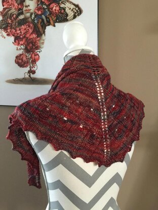 Bellbrook is a reversible, top-down, triangular shawl with ribbing and little bells that look like leaves. The bells slip right in between the ribs without disrupting the overall pattern.