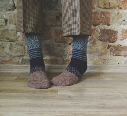 Belle Soeur are 3 color socks, with bit of stripes and lace. Knitted cuff- down, with heel flap. Inspiration for these socks comes from my wonderful sister in law, Belle Soeur from French- sister in law.