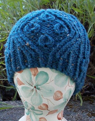 A “twist” on the classic Aran Diamond alternates with a bell pattern to provide this cap with two different looks. Finish the top off with an I-cord “button”.