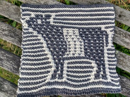 Knit flat using the slipstitch technique, this is an easy dishcloth for beginners that looks much more complicated than it really is! Measures approximately 10” by 10” when lightly blocked.