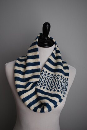 Because some people have a tighter gauge when working stranded colorwork, you may wish to go up in needle size for the stranded portion of the loop to keep your tension even.