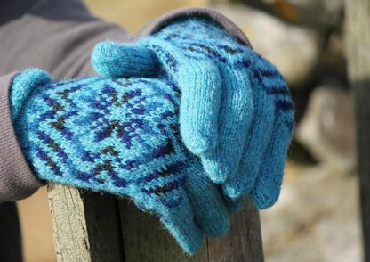 Gloves designed to use up small amounts of Shetland yarn - either Jamieson & Smith 2 ply jumper weight or Jamieson's Spindrift.