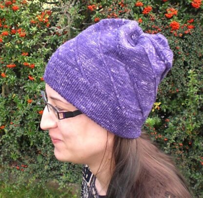 This easy hat plays with the simple texture of purled and knitted fabric. Twisted stitches add another dimension that makes the texture pop.