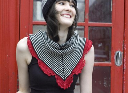 Named for my new favorite neighborhood (where this collection was photographed), Bermondsey makes use of slipped stitches and a contrasting short row scallop edging to liven up an easy-to-knit garter shawlette. The unusual edging technique leaves just a touch of zig-zaggity eyelet detail and picots give it a bit of girly flair.