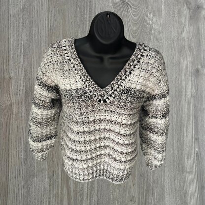 BERRI CROCHET SWEATER PATTEN PDF - Crochet Womens or Mens Pullover - A cosy textured v-neck jumper available in 8 sizes Small to 5XL. Made seamless all in one from bottom up so no sewing of side seams. Unisex crochet pattern.