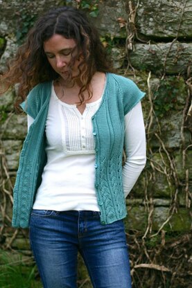 A short sleeved layer that will add a special touch to any outfit. Knit in one piece from the bottom up, watch the lace flow smoothly into the ribbed bodice.
