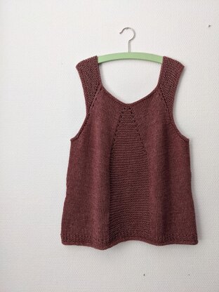 It’s knitted up in one piece top down; You start with the neckline and work increases along the front and back panels as well as for sleeve (straps).The main part is worked in stockinette stitch and sleeves and centered front and back panels are worked in garter stitch. When you put sleeve strap stitches on hold you cast on stitches for the underarm curve and work front and back piece separately shaping the armhole curves with short rows. The body is finished with an i-cord bind off (or a few garter stitch rounds) after a hem in broken rib. At least you pick up stitches for the sleeve edge and work an i-cord bind off or a few rounds of garter stitch.