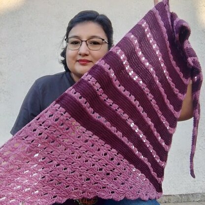 Chal tejido con puntos alargados o vainillas pensados en simular una X o una O para repetir la despedida XOXO de los chats anglos. También siento que es una oportunidad de abrazar a otros y demostrar el cariño, chal ideal para regalar a un ser querido o para abrazar el alma propia. Puede tejerse con una madeja abandonada en el stash que tenga muchos colores y una neutra o con muchos restos de hilados.