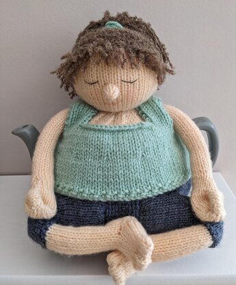 The lower part of the tea cosy is knitted using 2 strands of DK held together. The upper half is single strand. I use boucle yarn for the hair but DK or other suitable yarn could be used.