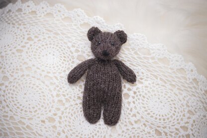 An easy to follow pattern which makes a knitted photo prop bear. Ideal for newborn photographers as this bear is just the right size to fit into a newborns tiny arms. One size at 6.5 inches. this bear can be made with approx 25g of dk yarn so an ideal stash busting project. i have used 4mm needles. Yarn is Alpaca DK by Stylecraft. Shade - Bark. 20% Alpaca 80% Acrylic