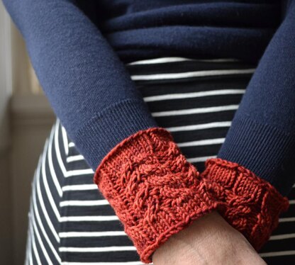 I designed these little bracelets for a friend who edited my novel. After trying many, many yarns, gauges and cable combinations, this simple, chunky pair turned out to be just right. The little whale you see on my wrist is a symbol from my book and reminds me of what Beverly has helped me achieve.