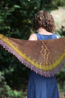 Bewilderness is a crescent shaped shawl in a satisfying combination of stripes and lace, with a striking cable and slipped stitch motif over a snuggly garter base. It is edged by a unique and elegant lace which can be worked in a series of adaptable modules.
