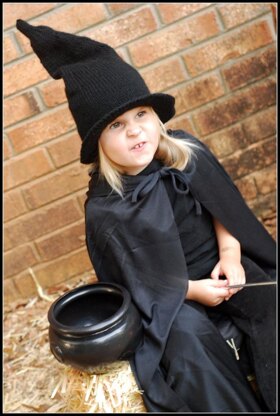 A warm and cozy hat for even the tiniest witch! Hat is knit in the round from the brim up with an extra long stocking. The brim goes all the way around and is encased in stockinette knitting. The pattern includes a traceable brim outline. Because of the sturdy brim, knit size closest to actual head circumference.