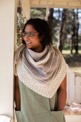 The perfect shawl for brisk walks, egg-gathering and flower picking, this piece shines in lofty, farm fresh yarns. Choose two or more colors to highlight the cable, texture, and stripe panels throughout the shawl.