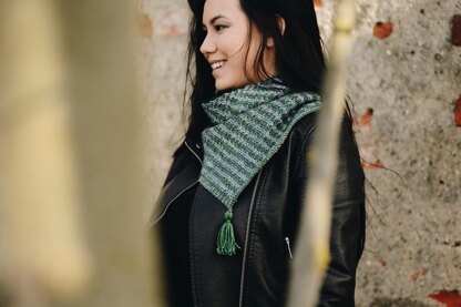 I love how knitting on the bias can take the ordinary and turn it on edge! Here, simple two-tone stripes become much more as they’re nestled together in a tuck stitch pattern. Whether you choose bold contrast or subtle color shifts, the flattering diagonal design in this unisex bandana provides eye-catching style, function, and fun!