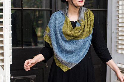 This wrap follows a simple asymmetric construction with twisted rib stitches throughout the pattern. 1x1 rib is worked halfway through the wrap and then changes to 2x1 rib along with colour and textural patterns. While there are different stitch patterns used in the 6 sections, they are repetitive in nature throughout the section. Only the placements of the stitches vary so as to form the design shape or element in the pattern. There are 3 colours used in the sample, feel free to use more or just work it in one colour - as a lovely tester said, “to show off the intricate stitches and changing patterns.