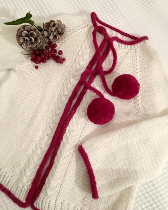 Il cardigan “Biancospino” è un modello unisex con una costruzione top down, lavorato in piano con comode maniche raglan, realizzato nelle taglie che vanno dai 3 mesi fino ai 2 anni. I bordi anteriori sono caratterizzati da intrecci e noccioline su tutta la lunghezza, mentre sul dietro si realizza una piega a cannoncino che aprendosi, riprende il motivo decorativo e dona agio nella vestibilità. I bordini sono stati rifiniti con un fine i-cord in colore di contrasto e per la chiusura ci sono due simpatici pompon annodati. Divertitevi realizzandolo, scegliendo e abbinando i colori che più preferite. È una creazione che richiede un pò di attenzione per gli intrecci ma niente di particolarmente difficile. È un progetto di facile realizzazione adatto anche alle meno esperte, mai noioso e di veloce scorrevolezza.