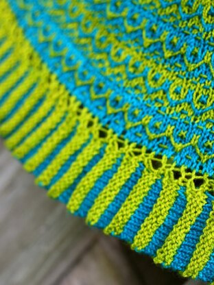Biellese is worked by knitting a side-ways two-tone ruffle. The ruffle is worked with the simplest of short-rows, no intarsia, no troubles! Then you pick up and stitches and work the slip-stitch body in alternating bands of color.