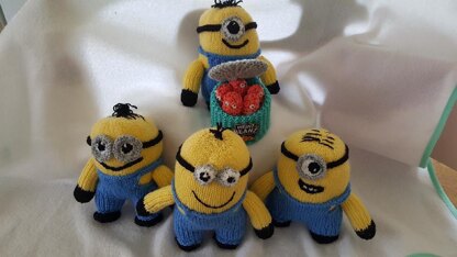 Instructions for knitting your own minion. 2 versions: a taller 8 inch one and a shorter, fatter one Knitted in the round Approx 25g of main colour , yellow and less than 10g of blue. Oddments of remaining colours.