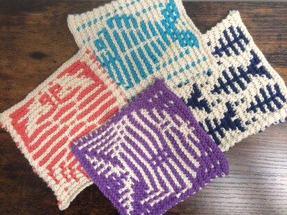 Each wash cloth is knit in 2 contrasting colours of Stylecraft cotton DK classique 50 grams ( 92m 100 yards)