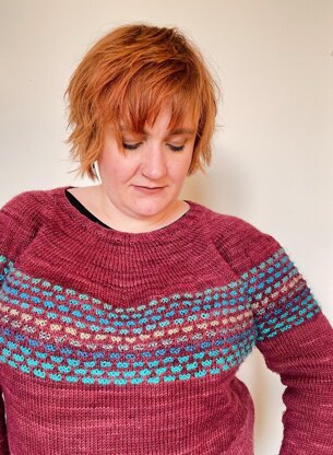 The circular-yoked Big Jimmy Jab jumper isn’t just size-inclusive – it’s large bust inclusive, with an optional bust adjustment to add 4in/10cm to the front width of the jumper - over only the bust. No more sagging shoulders, baggy waists, and rubbish fits.