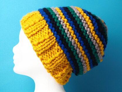 This item is a PDF file knitting pattern for a really fast and easy to knit slouchy beanie hat.