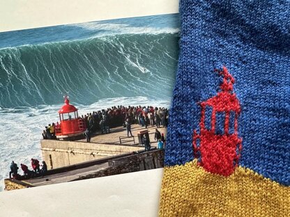 Atemberaubend sind die Filme von Surfern, wenn sie die weltweit höchsten Wellenberge nahe dem Fischerort Nazaré bezwingen. Ganz persönliche Big-Wave-Socken inspririert von einem Hobby sind hier als Geschenk entstanden. Man kann sie aber auch tragen, wenn Surfen nur als „Zuschauer-Sport“ ausgeübt wird…