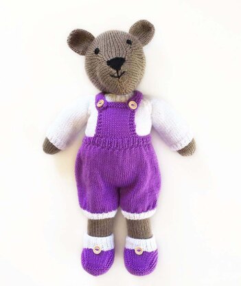This is Billy, a cute knitted teddy bear complete with his teddy bear clothes - dungarees, jumper and boots.