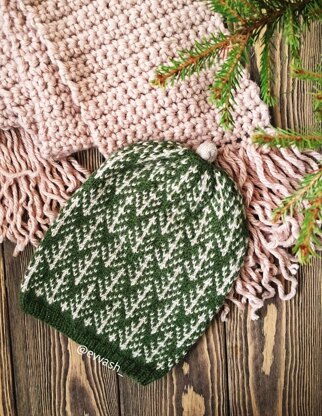 Materials: 16 inch (40 cm) US 4 (3.5 mm) circular needles or US 4 (3.5 mm) double pointed neeldes. Yarn Sandnes garn Alpakka ull (65% alpaca, 35% wool) 109 yds/1.75 oz (100 m/50 g). Colors: 2650- beigemelert (1 ball); 9573 – mosegronn (2 balls)