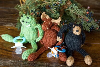 Binky Buddies- the perfect solution to the pacifier that Mom can never seem to find. This collection includes patterns for Moose, Black Bear and Froggy.