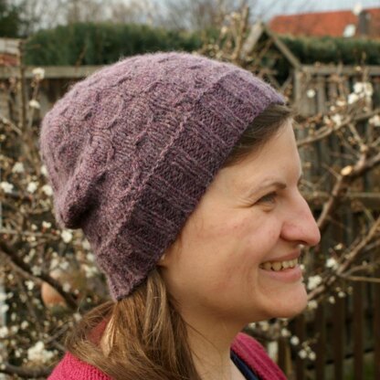 Birdflock is a casual yet feminine hat. It is knitted in rounds from the bottom up. It features slipped stitches and rudimentary cables that create the image of a flock of birds flying in the sky.