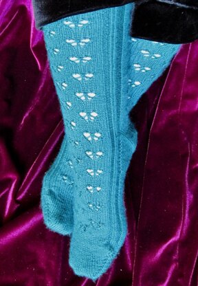 These socks have a lacy repeating pattern that resembles the beautiful Richmond Birdwing butterflies. The top edge features a pattern made of gathered dropped stitches that also look like butterflies.