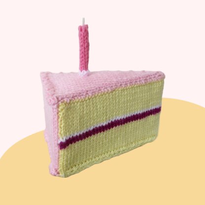 Knit a yummy cake slice for decorating birthday celebrations or special days. Designed by Amanda Berry @fluffandfuzz, this cake slice is knitted in acrylic DK yarns on single pointed needles (not in the round). For confident beginners and above, other techniques used include casting on and off, knits, purls, increases and decreases, and seaming to finish. The pattern incorporates knitted bobbles for the icing, and instructions how to knit a bobble are included